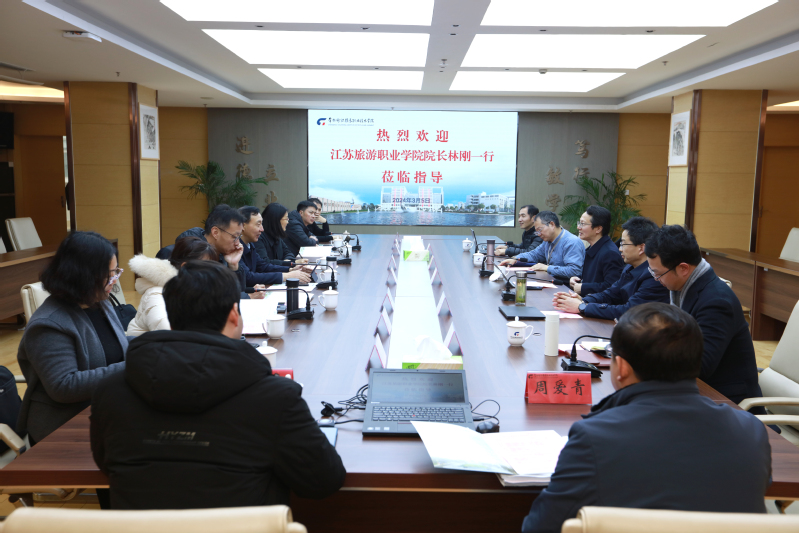 3月5日下午,江苏旅游职业学院党委副书记、院长林刚,党委委员、副院长周丽,党委委员、组织部部长高欣等一行10人来校调研交流。我校党委副书记、院长洪霄,党委副书记王顺明及相关职能部门负责人参加交流,会议由洪霄主持。